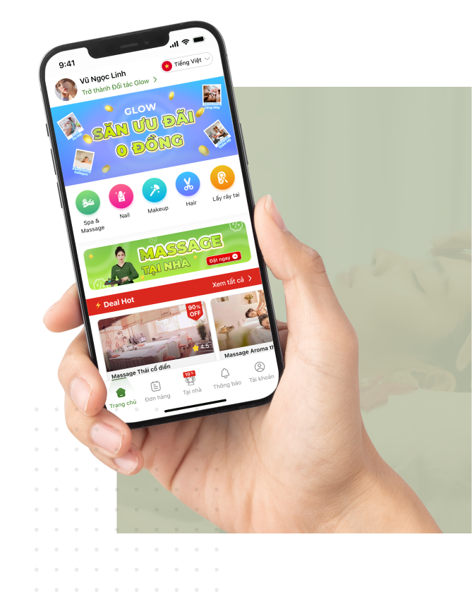 Glow trân trọng và biết ơn vì sự hợp tác vủa bạn với Ứng dụng Glow. Chúng tôi tin rằng bạn là một trong những viên kim cương tỏa sáng mà chúng tôi mong muốn được tìm thấy và kết nối tới khách hàng. Đúng như cái tên Glow - tỏa sáng, chúng tôi không chỉ mong muốn mọi người được chăm sóc sức khỏe như massage tại nhà hay chăm sóc sắc đẹp một cách tiện lợi, an toàn và chất lượng mà còn hy vọng rằng mỗi Đối tác tại Glow sẽ luôn tìm thấy được niềm hứng khởi, đam mê với công việc, góp phần lan tỏa những điều tích cực tới cộng đồng.