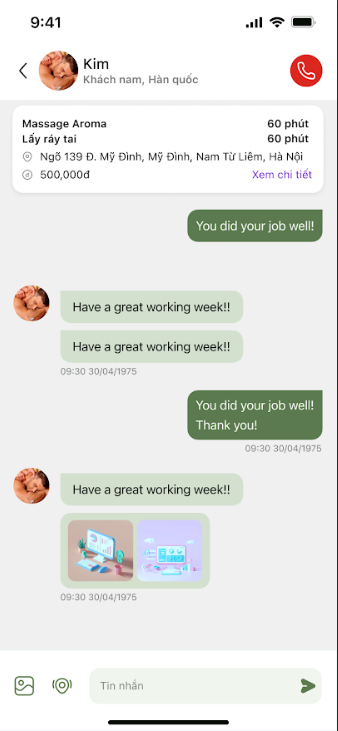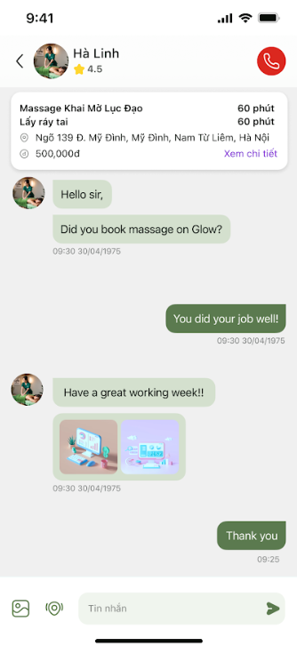 7. Minh họa phần chat thông qua mục Tin nhắn giữa Khách hàng và Kỹ thuật viên của Glow |